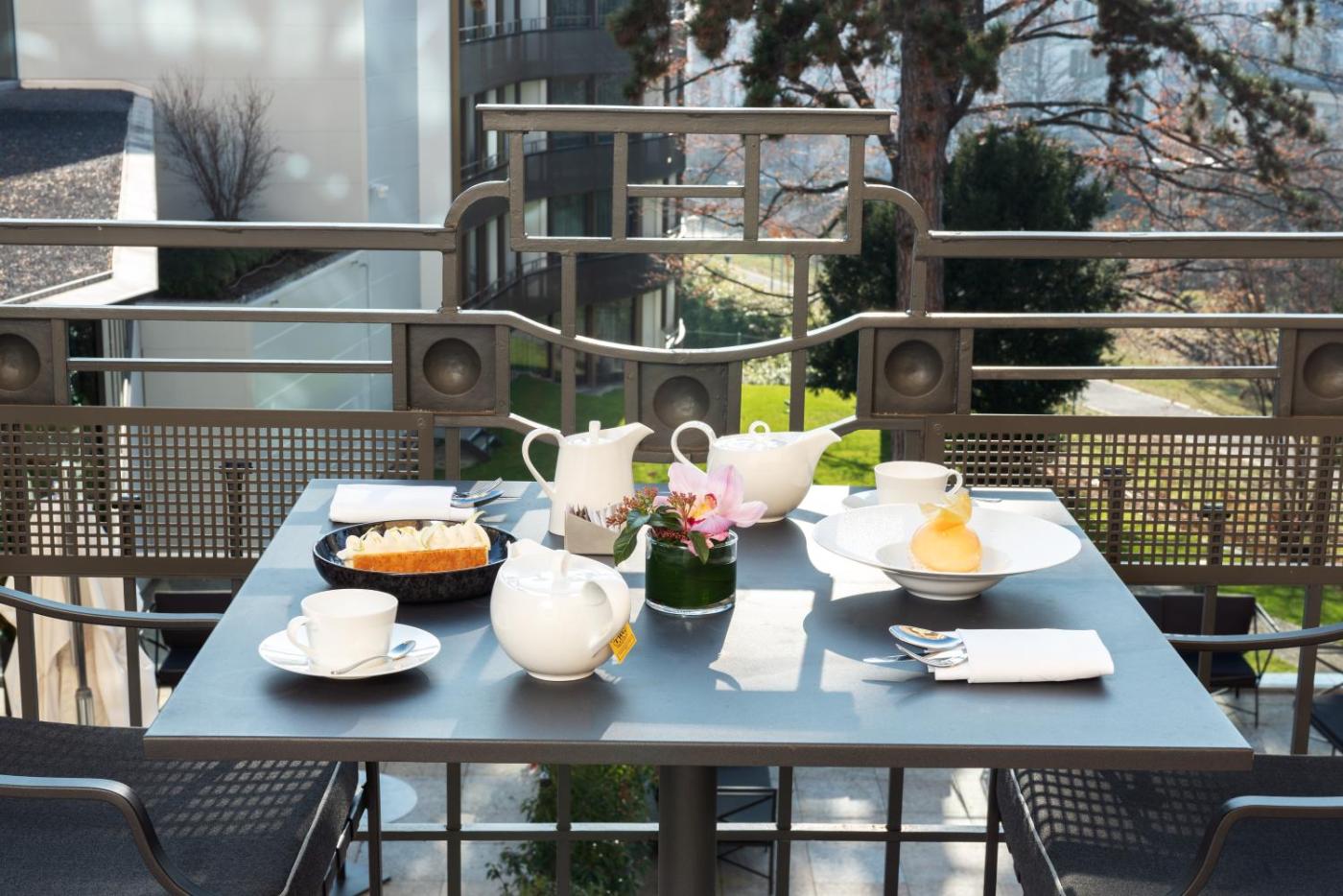 The hotel comprises of two wings: the Savoy wing occupies an elegant Art Nouveau-style building androoms and suites are with lake views or city views. Guests can access the Spa du Royal and 24 hour fitness centre, with breakfast included. The Park wing is located in the heart of a city park and grants rooms with a private balcony, as well as access to the 24 hours fitness centre.